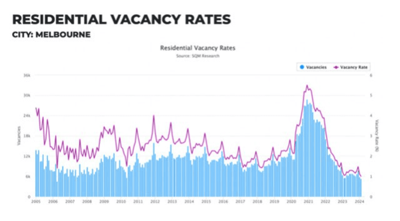 This is further indicated by Melbourne’s rental vacancy rates, which have remained persistently low across 2023 and into 2024: